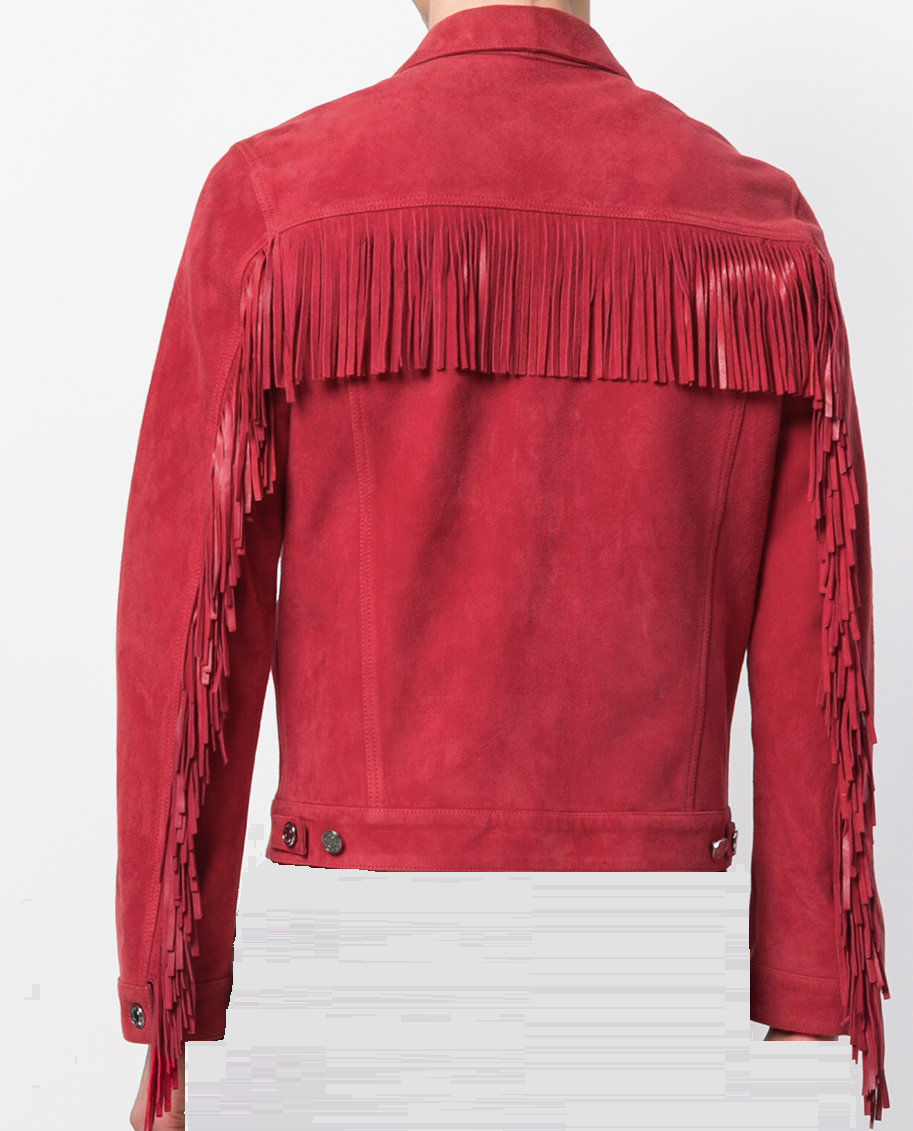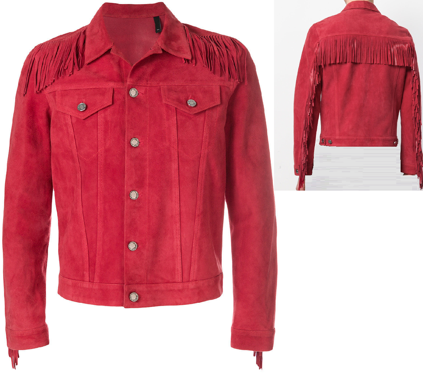 New Handmade Cowboy Men's Red Western Goat Suede Leather Fringes Hippy Jacket