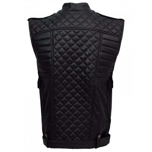 Men's New Handmade Black Quilted Motorbike Leather Vest