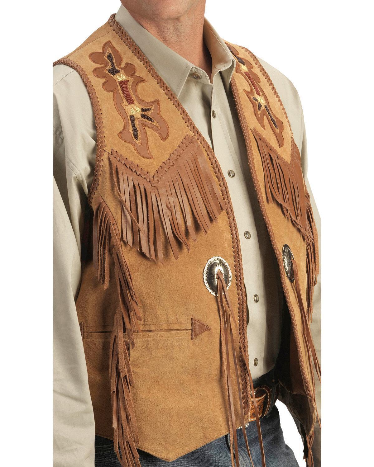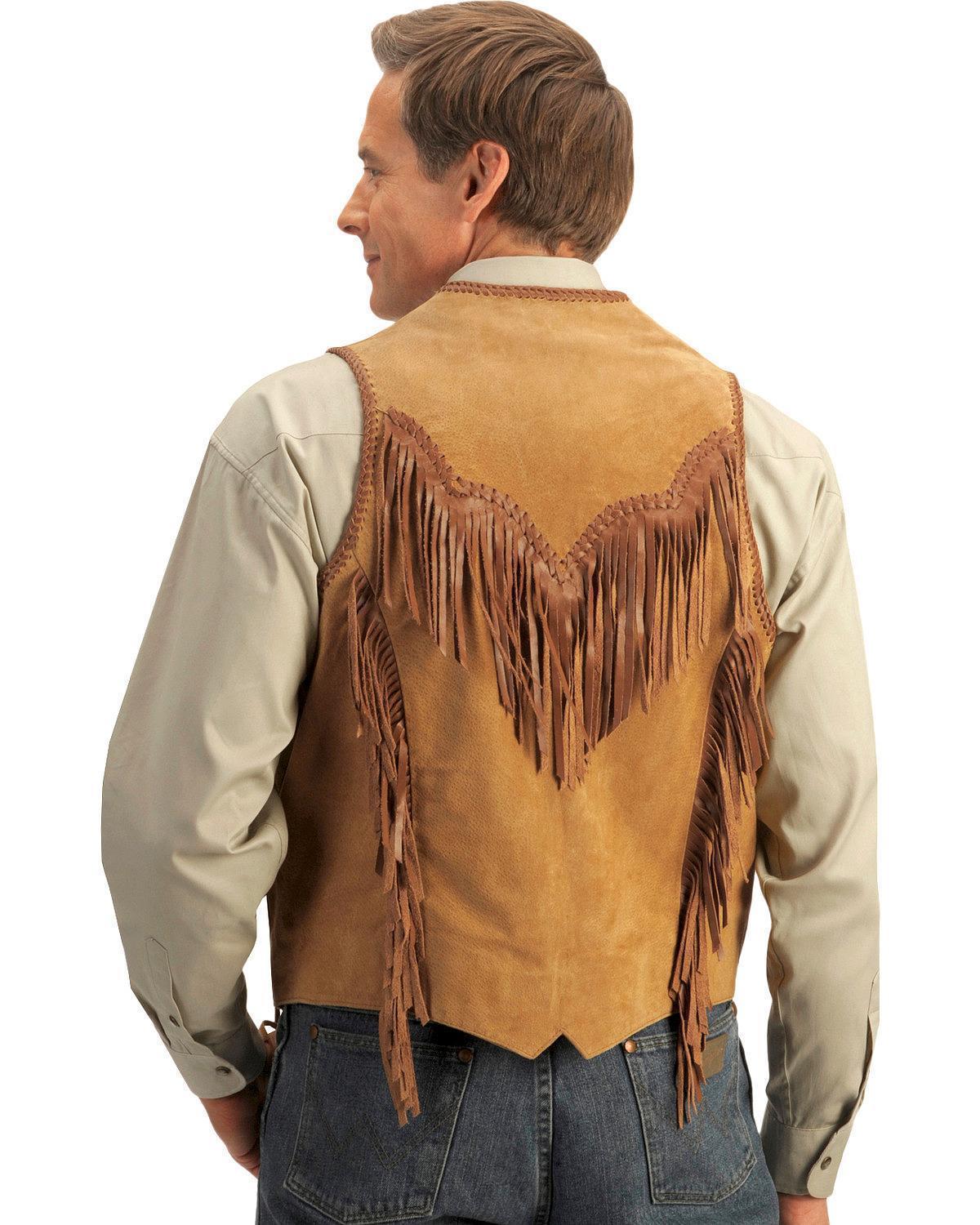Men Suede Cowhide Leather Vest Old Cowboy Western Fringes Wear