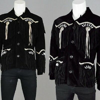 New Mens Western Cowboy Wear Coat Black Suede Leather Jacket