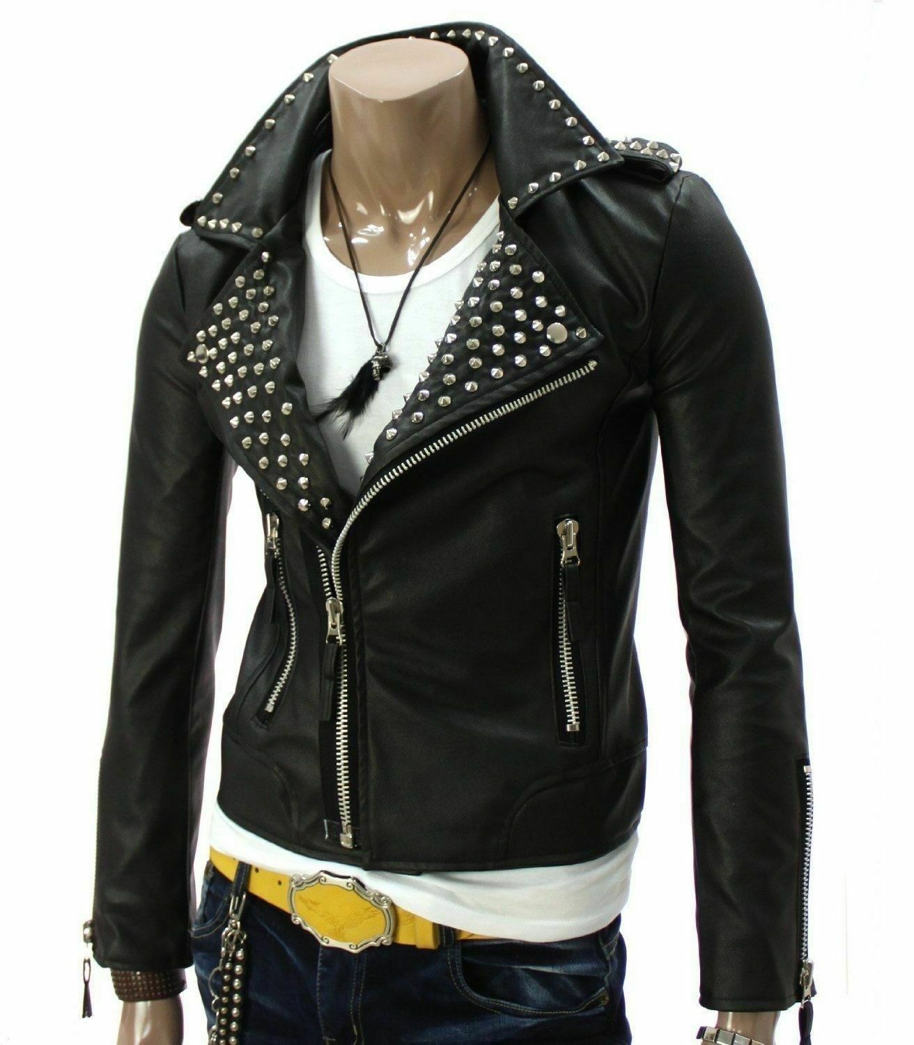 Handmade Cowhide Real Leather Biker Zipper Coats For Mens