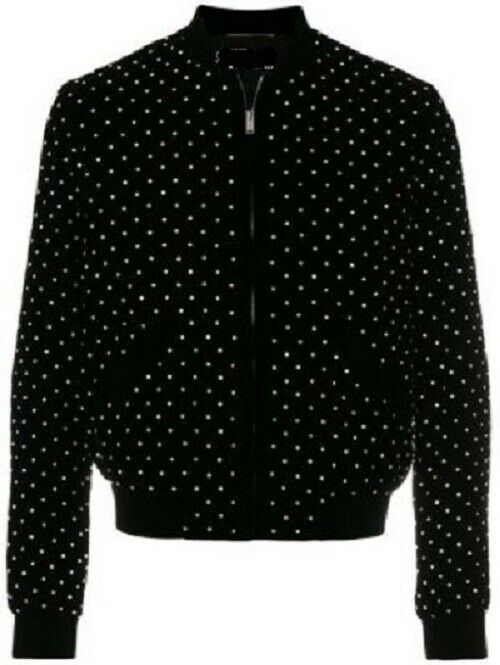 Handmade Men's Full Silver Studded Suede Leather Jacket