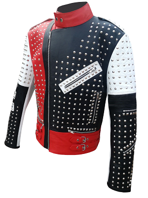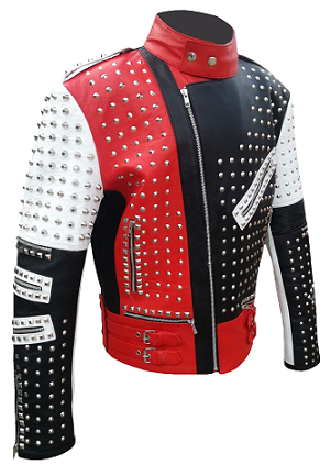 Handmade Men's Punk Silver Studded Zippered Leather Jacket
