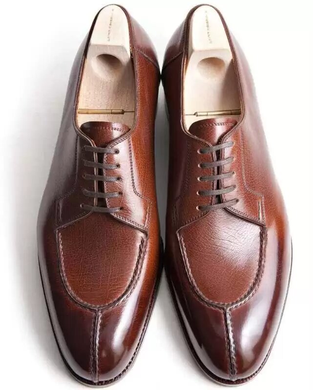 Handmade Men Brown Leather Derby Dress Lace up Shoes