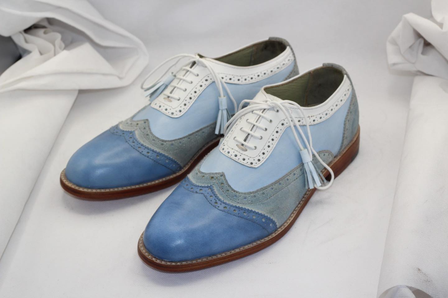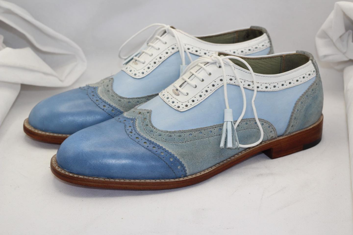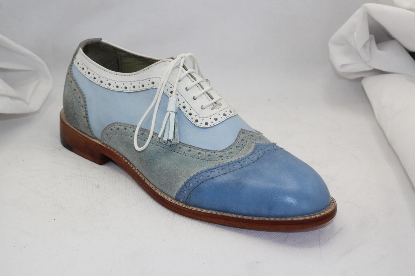 Unique and Classic Tri Color and Suede Leather Contrast Oxford Wingtip Dress Shoes