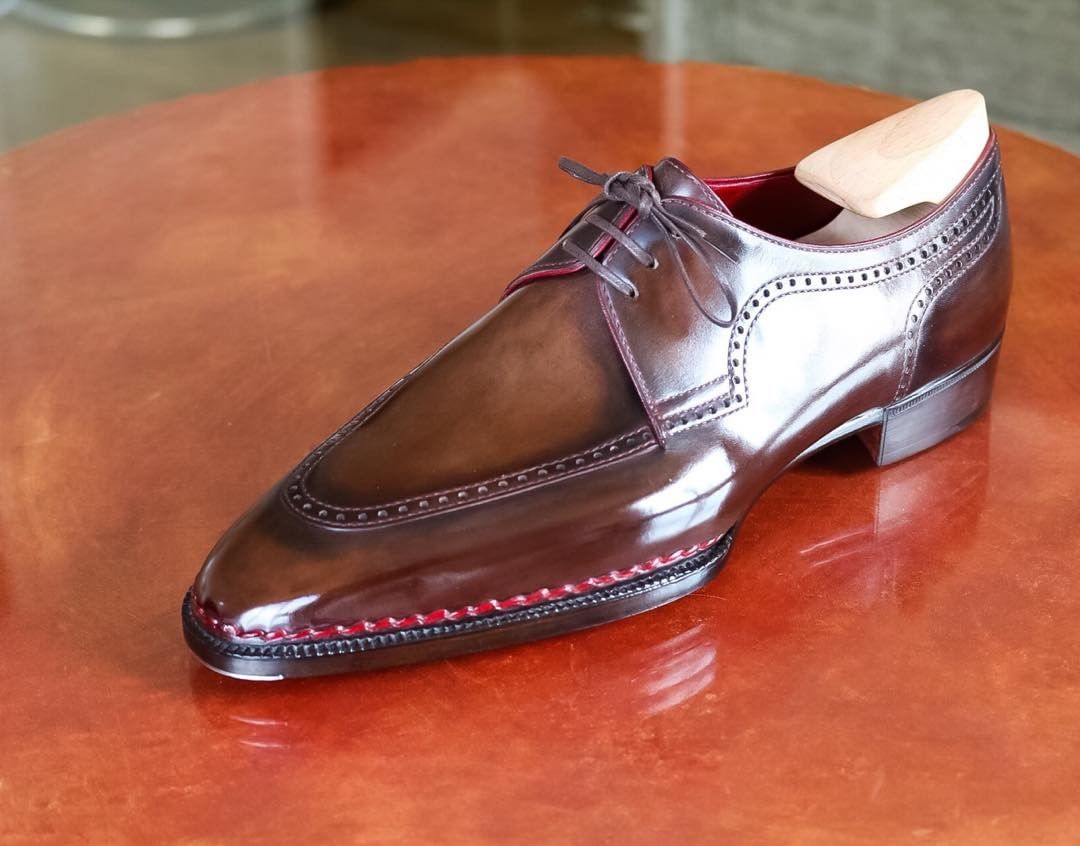 Bespoke Handmade Brown Patina Oxford Dress Classic Shoes