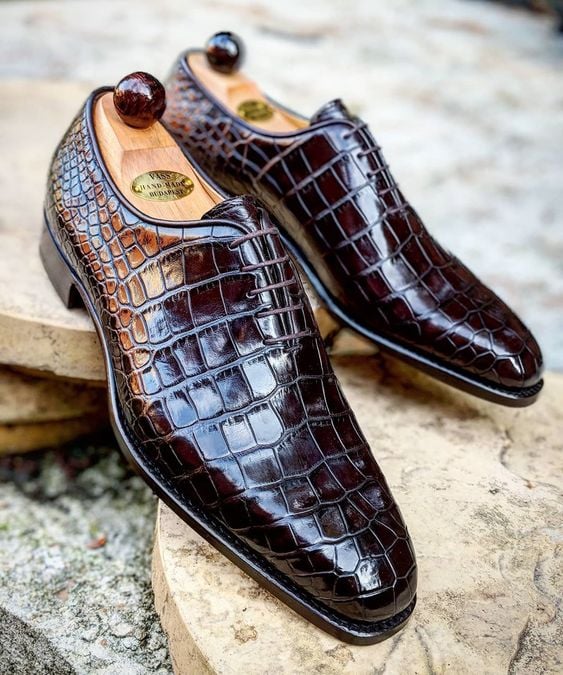 Handmade Black Crocodile Texture Leather Lace up Shoes