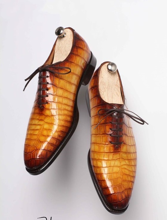 Handmade Men's Tan Leather Formal Crocodile Texture Men Shoes