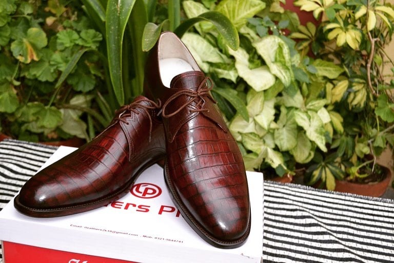 Dark Brown Genuine Crocodile Texture Leather Lace up Shoes