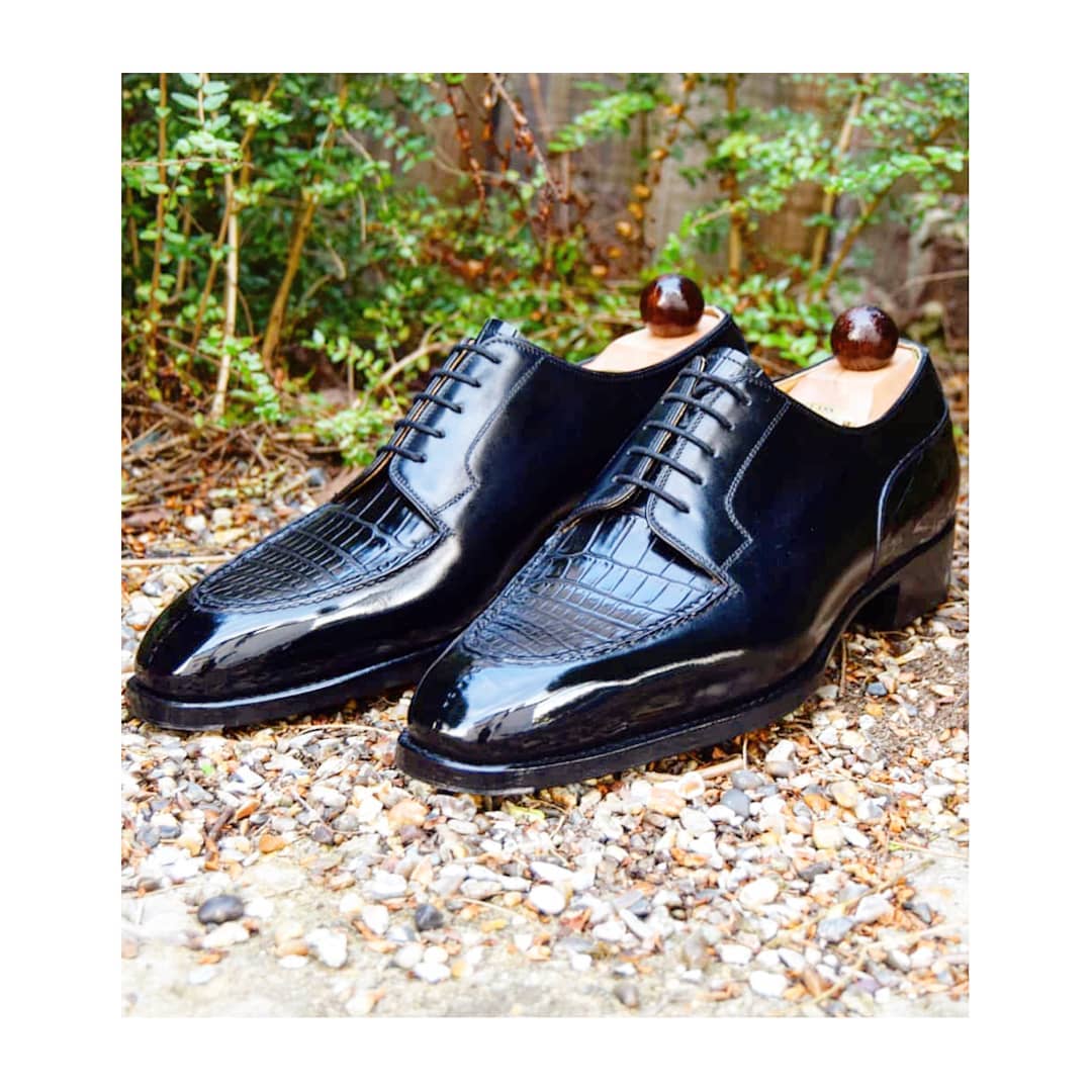 New Handmade Black Crocodile Texture Leather Dress Lace up Shoes