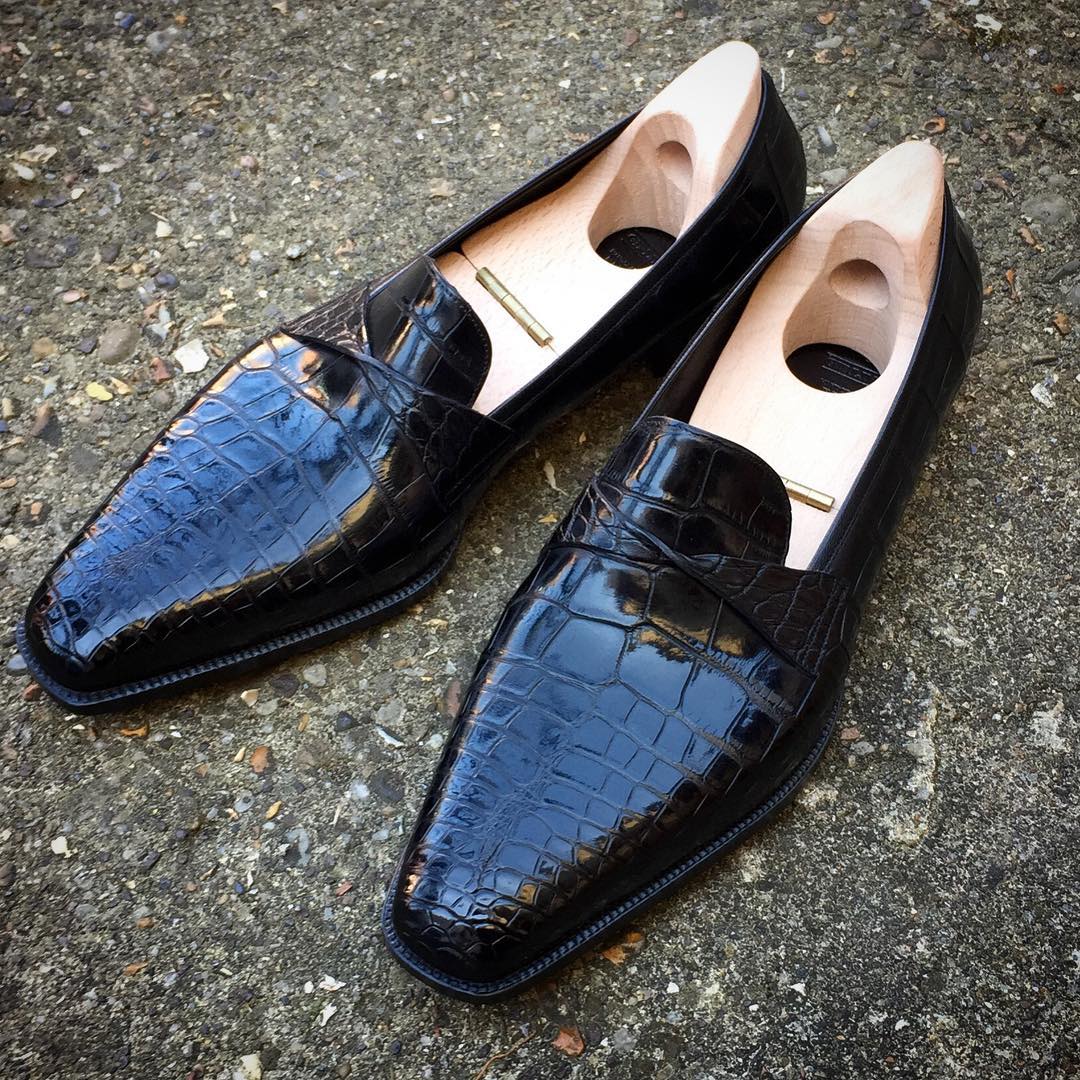Mens Black Crocodile Texture Leather Loafers Dress Shoes