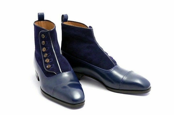 Men Navy Blue Color High Ankle Derby Cap Toe Suede Genuine Leather Button Dress Boots