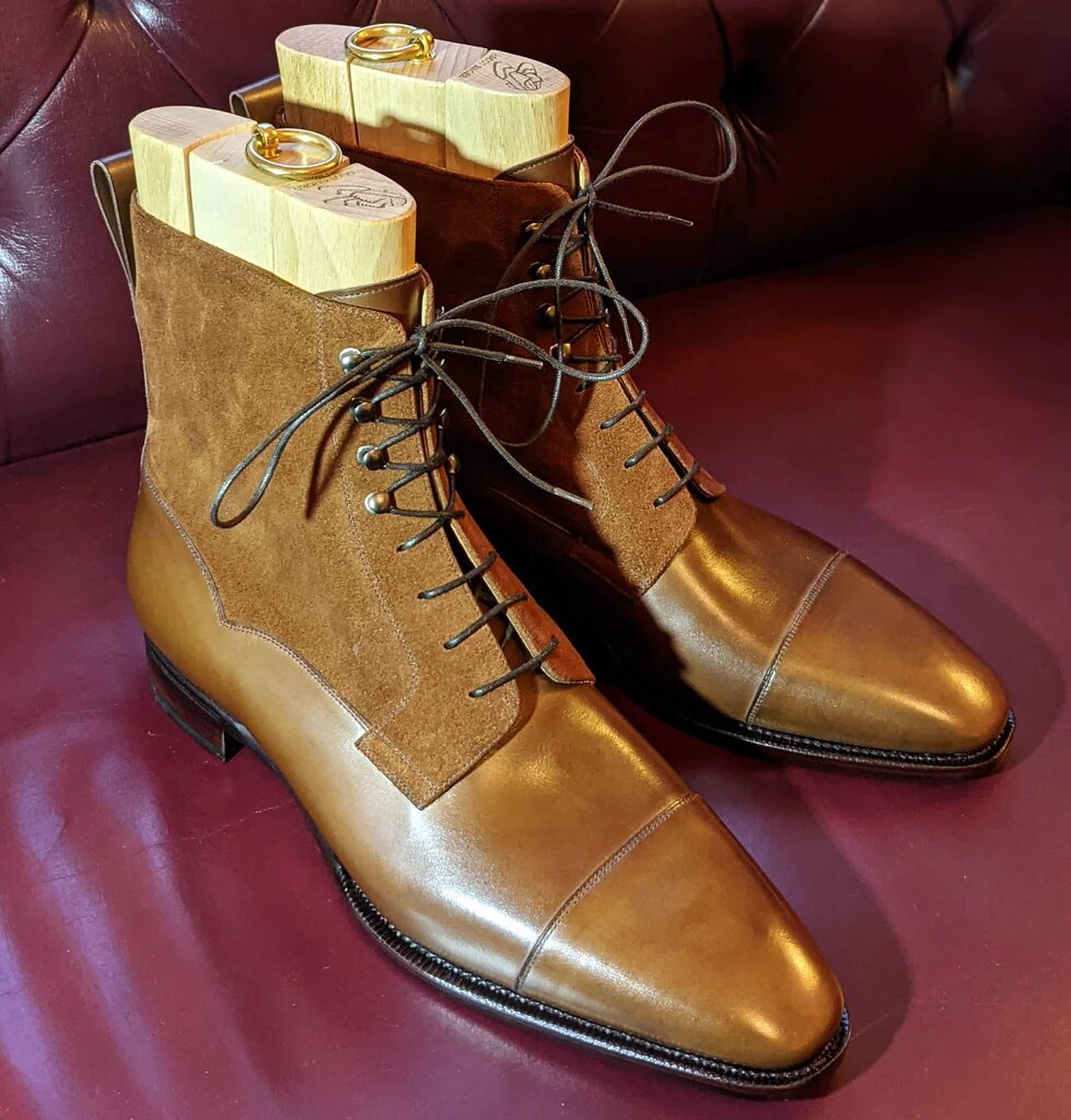 Light Brown Calf and Light Brown Suede Leather Men Dress Boot