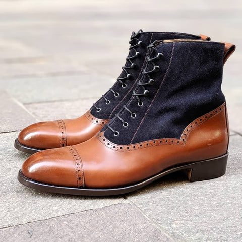 Antic Cognac Calf / Navy Suede Ankle High Lace up Boot