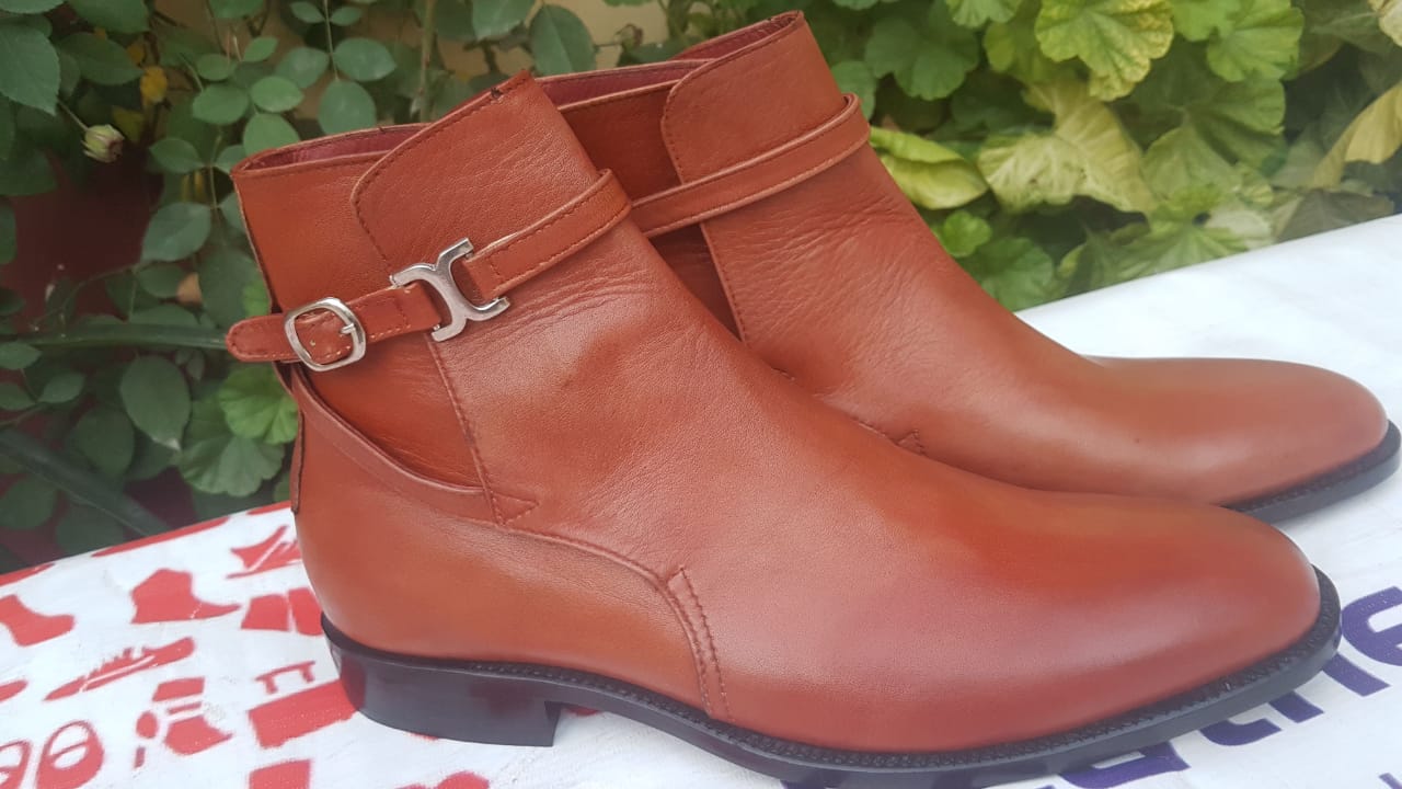Brown Leather Custom Made Men's Handmade Jodhpur Rounded Strap Boot