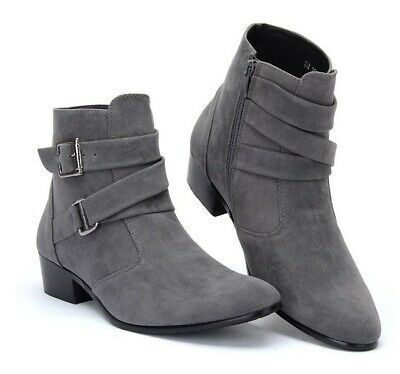 Suede Leather Gray Pointed Toe High Ankle Men Rounded Buckle Straps Jodhpur Boot