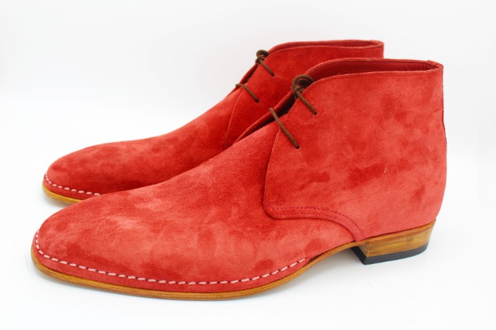 Handmade Mens Classic Red Color Chukka Suede Leather Boots