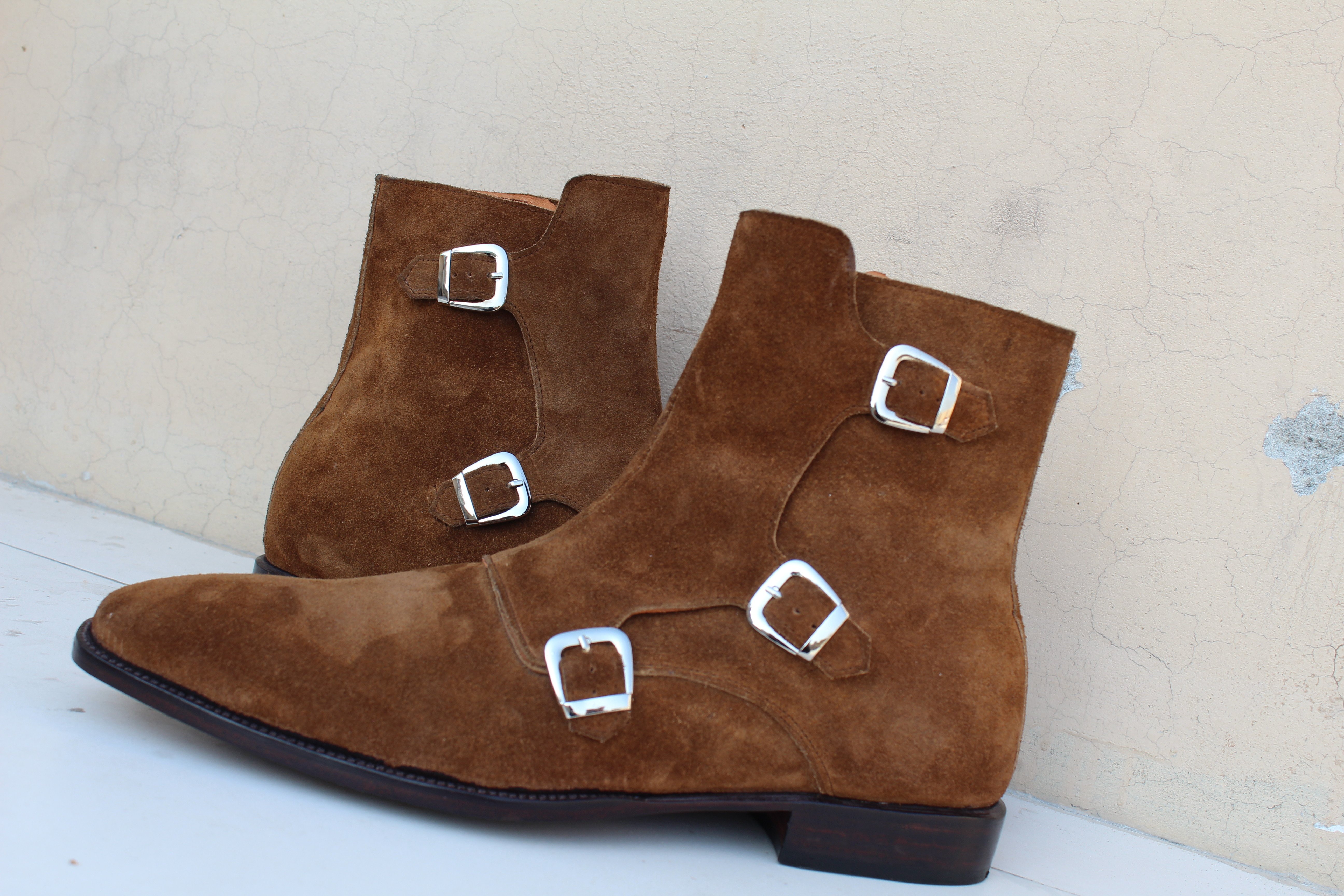 Brown Triple Monk Boots, Men Suede Leather Dress Boots, Handmade Boot