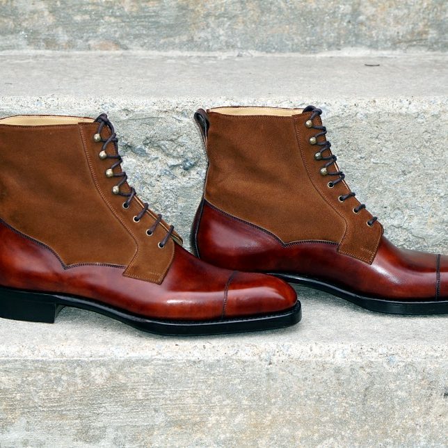 Handmade Ankle High Museum Gold and Red Brown Suede Leather Ankle High Lace up Boot