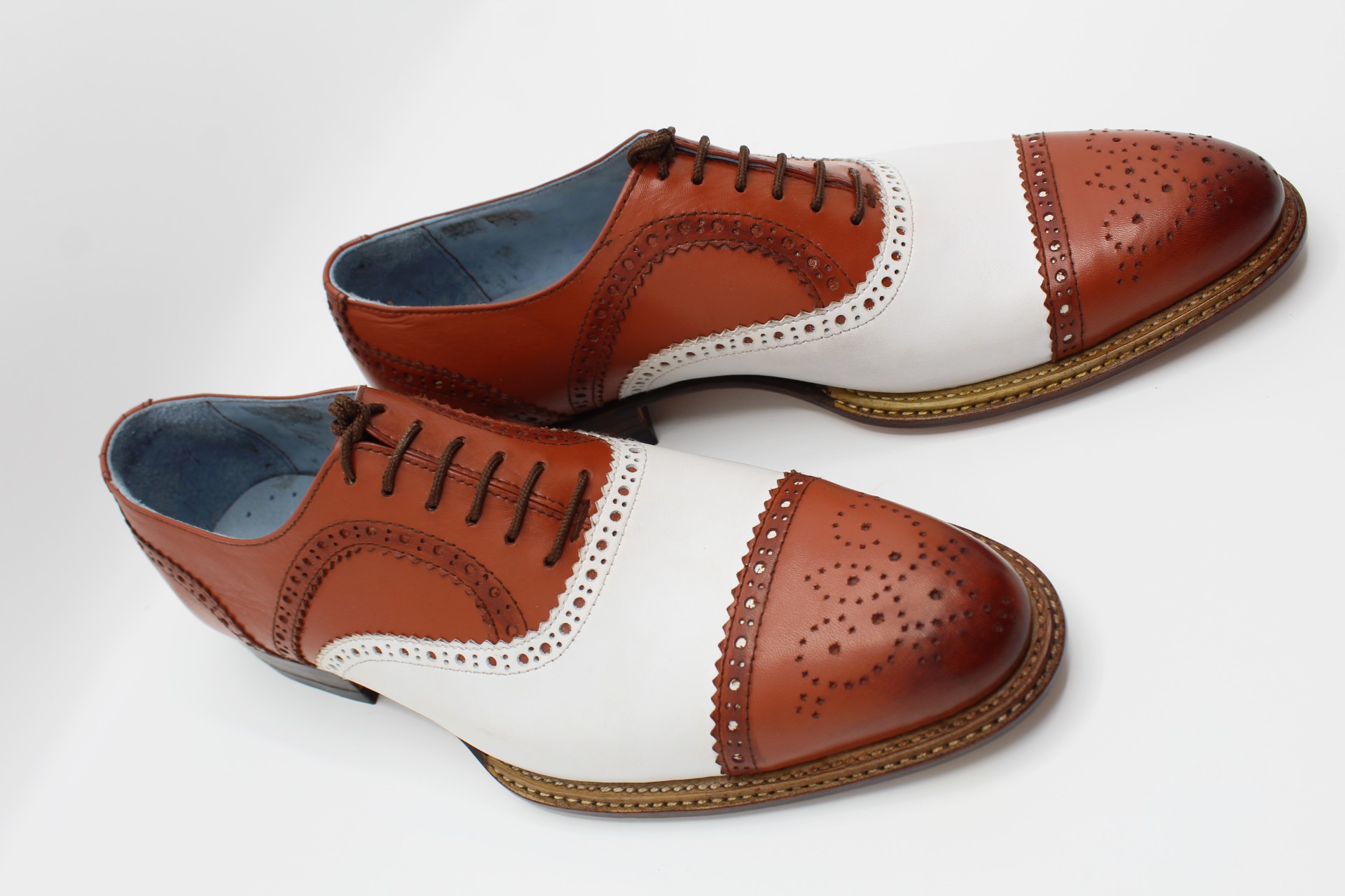 Crafted Leather Handmade Men Double Norwegian Welted Tan and White Lace up Dress Oxford Shoes
