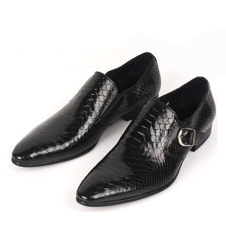New Handmade Men's Black Snake Skin Leather Dress Slip On Shoes