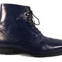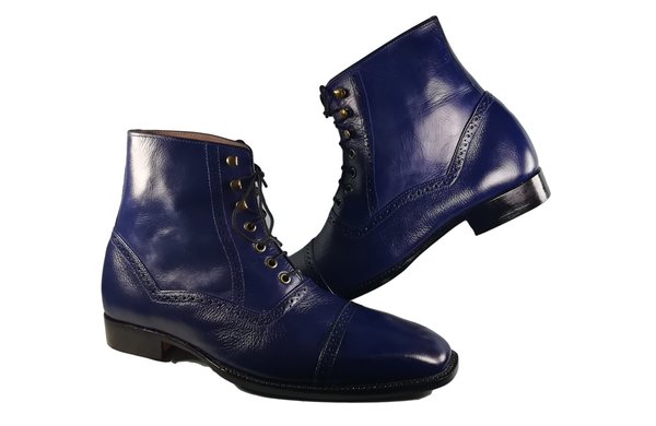 Stylish Men's Handmade Navy Blue Leather Cap Top Ankle High Fashion Lace Up Boots