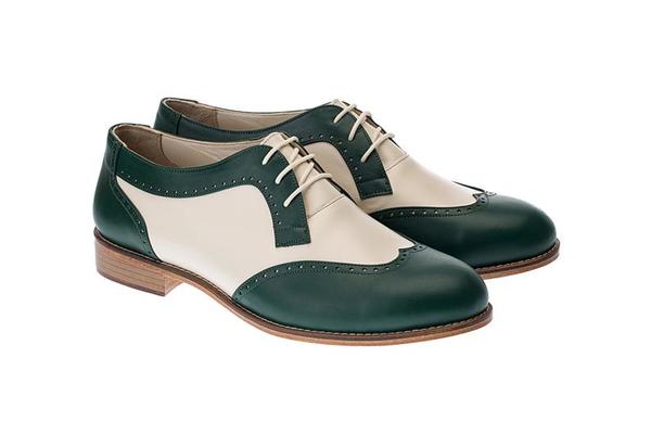 Handmade Men Swing Dance Green & Beige Oxfords Shoes