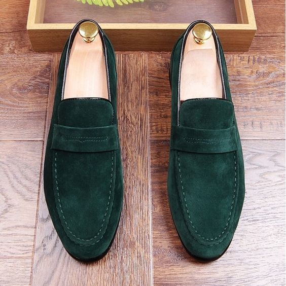 Green Suede Point Head Mens Flats Loafers Dapper Mens Dappermen Shoes