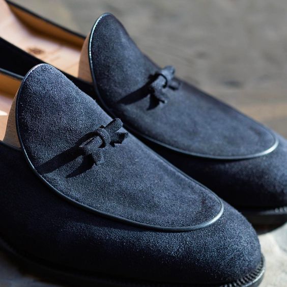 Handmade Blue Suede Tassels Moccasin Handmade Loafer Shoes