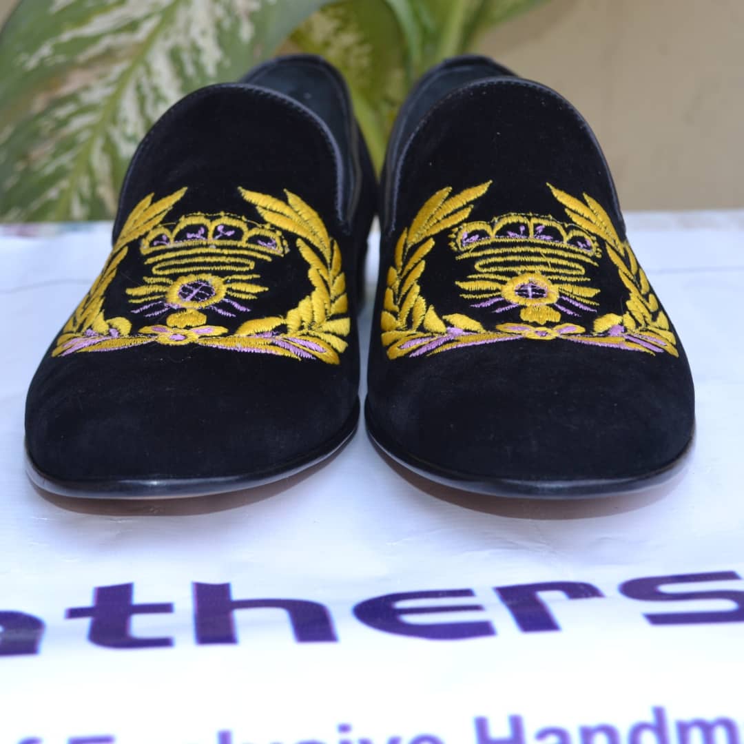 New Men's Handmade Leather Black Velvet Dress Shoes