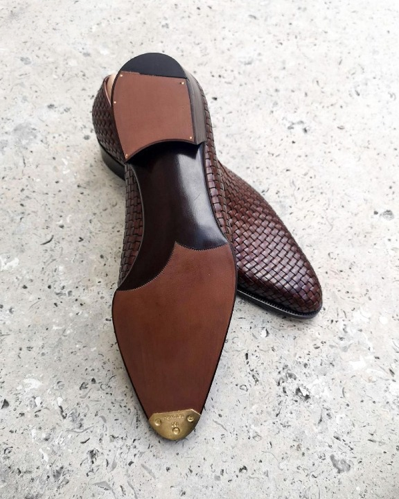 Bespoke Wholecut Woven Leather Loafers Dress Shoes