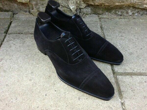 New Pure Handmade Black Suede Leather Lace up Dress Shoes for Men's